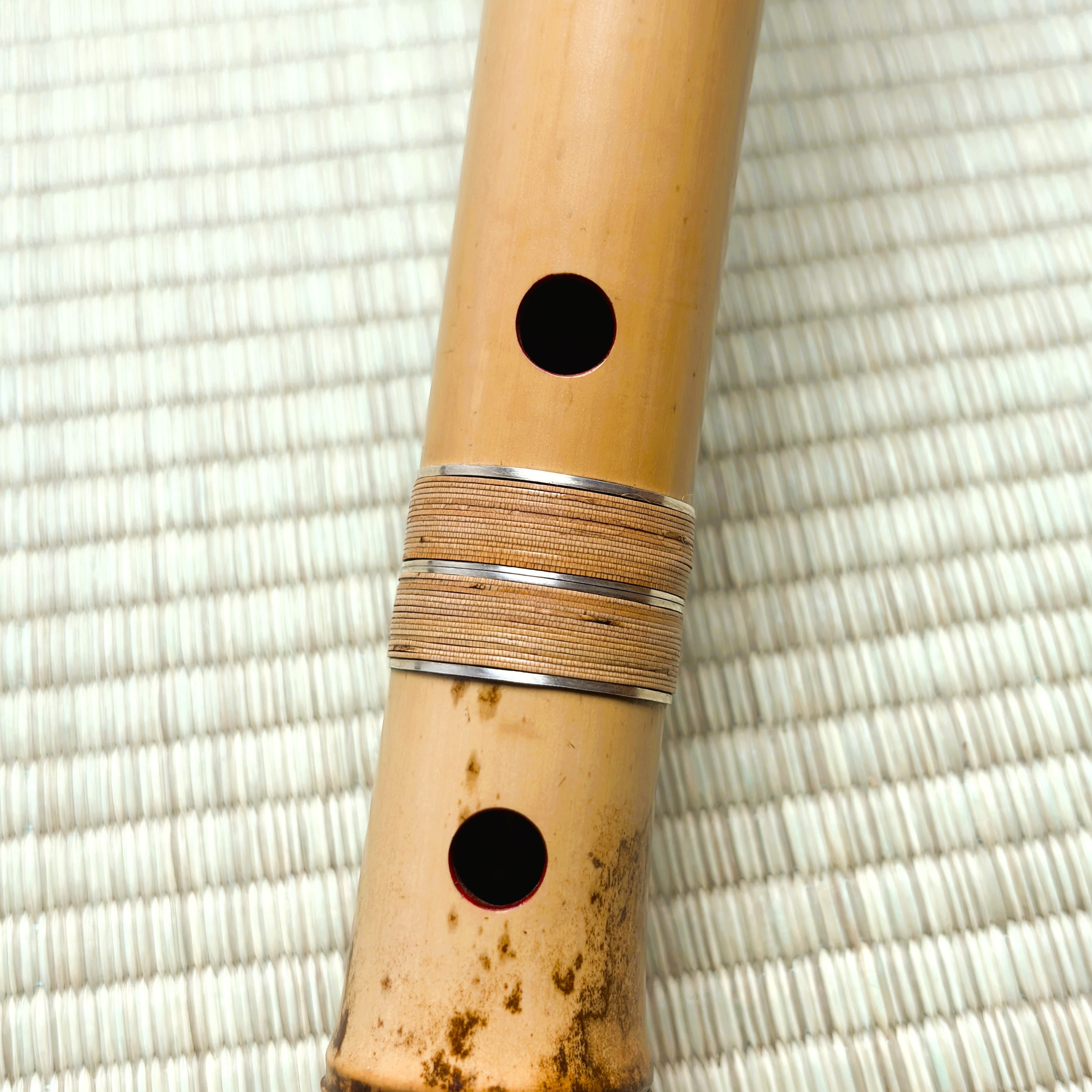 息への追従が素直で、低音の土台が厚く中高域は倍音がよく伸びるタイプの尺八です。ユリ、メリ・カリの可動が広く、本曲~合奏~録音のどれにも乗せやすいと思います。 大きな画像は↓をクリック