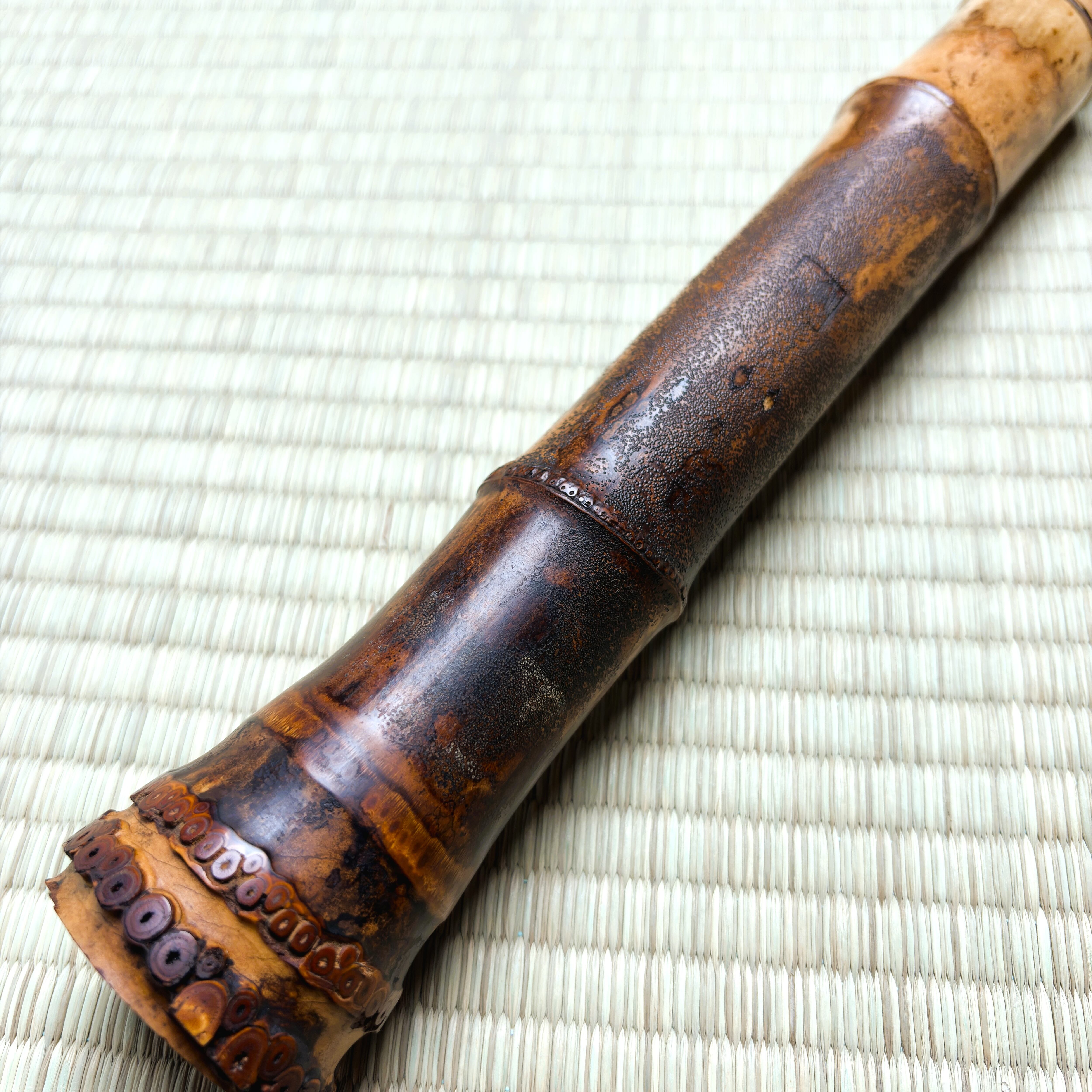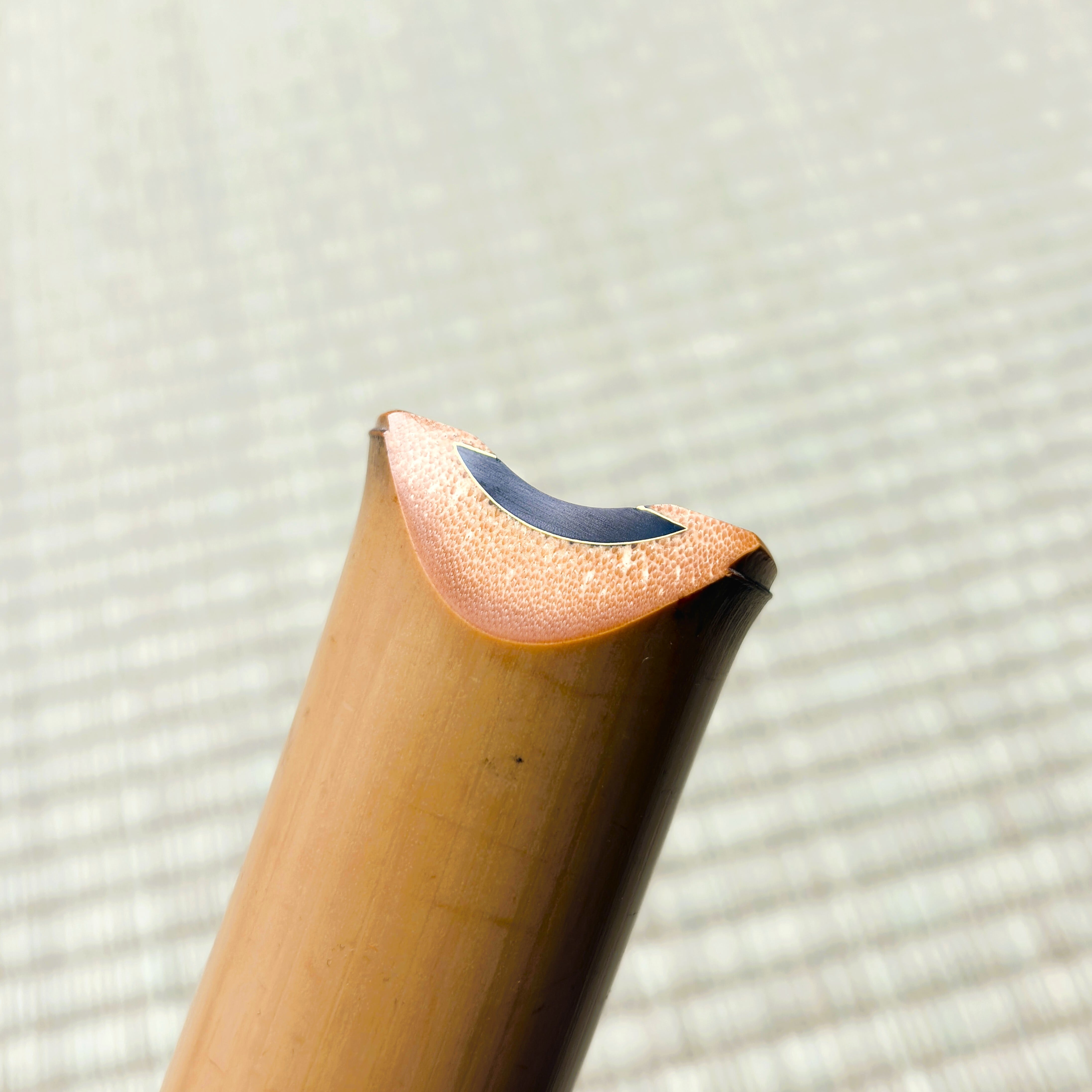 This shakuhachi responds faithfully to the breath, with a solid foundation in the low register and overtones that extend well in the middle and upper ranges. The instrument offers a wide usable range for yuri and meri/kari control, making it easy to use for honkyoku, ensemble playing, and recording alike.